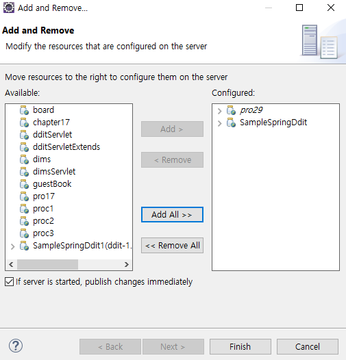 서버에 등록해주고 Web Modules에서 다음과 같이 변경합니다.