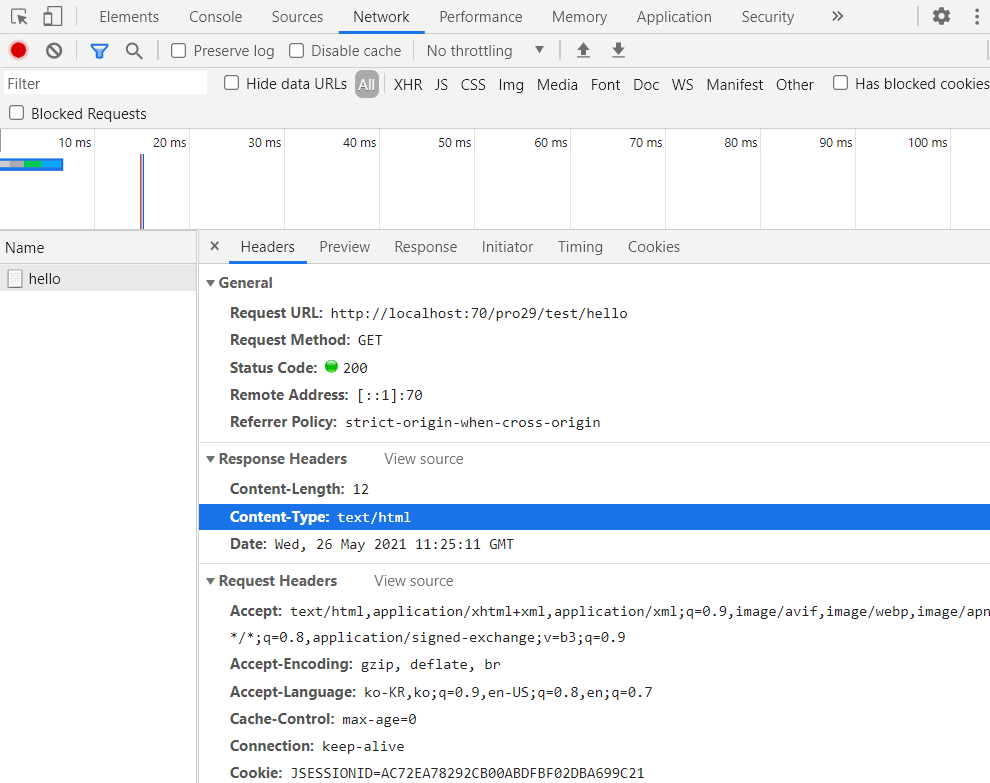 Name에 hello를 클릭하고 Header를 클릭하면 Content-Type을 확인할 수 있습니다.