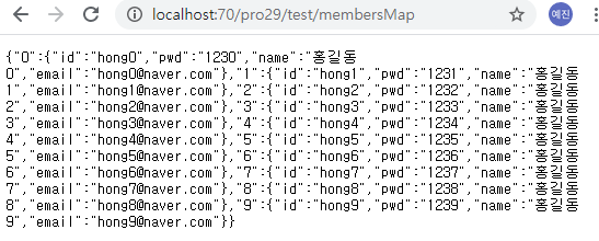 Map 객체 전달 화면
